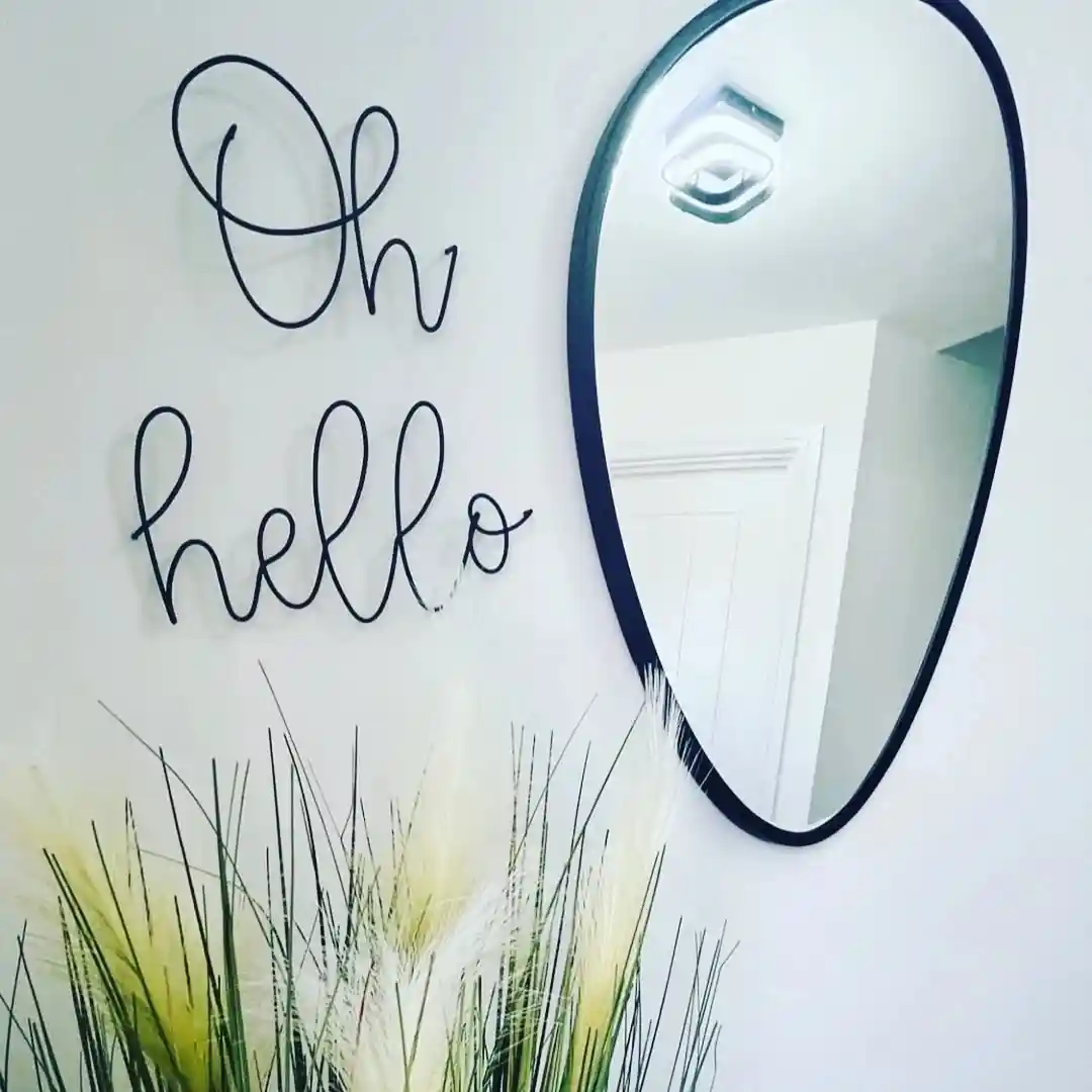 The wire word can be hung on the wall flat using nails or clear hooks or just simply placed on a shelf. Clear hooks available as an ‘Add on’ in our shop.
